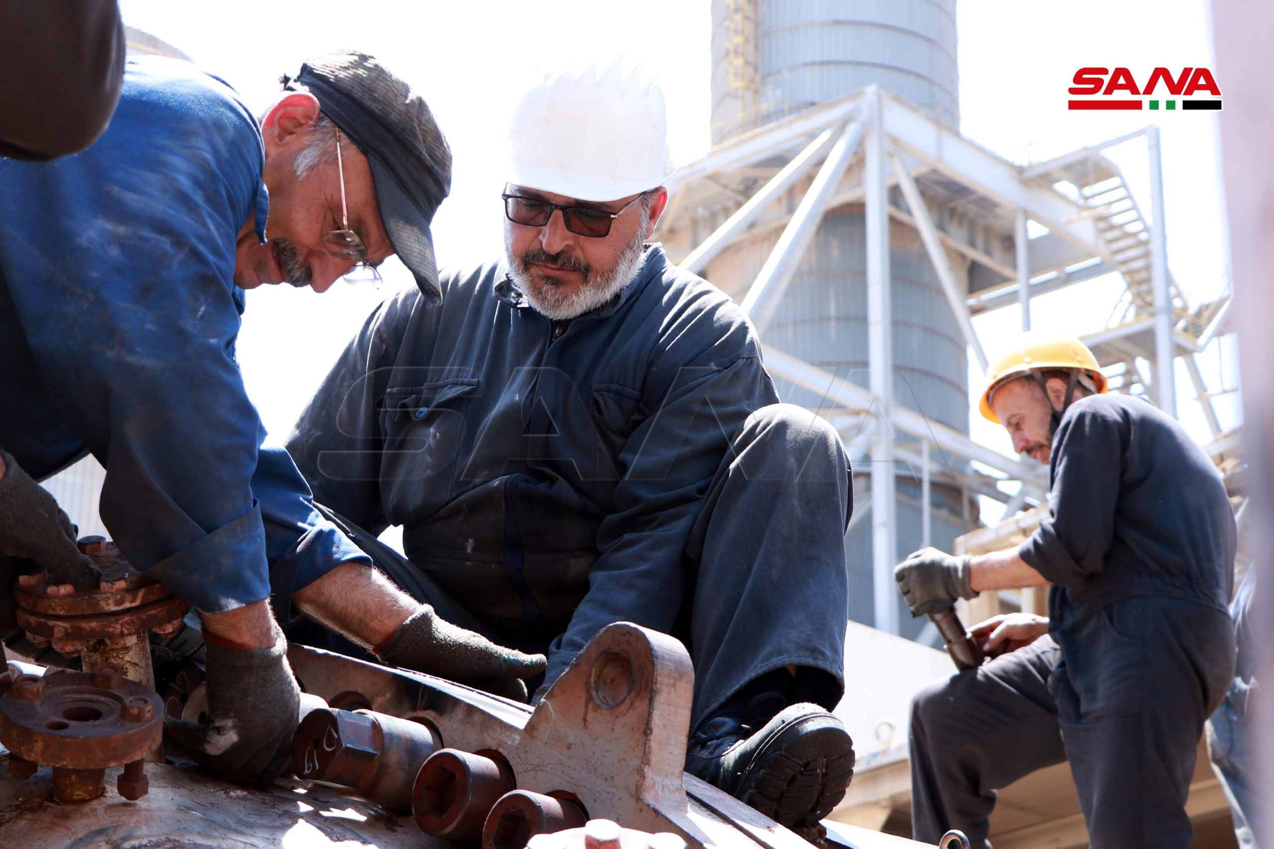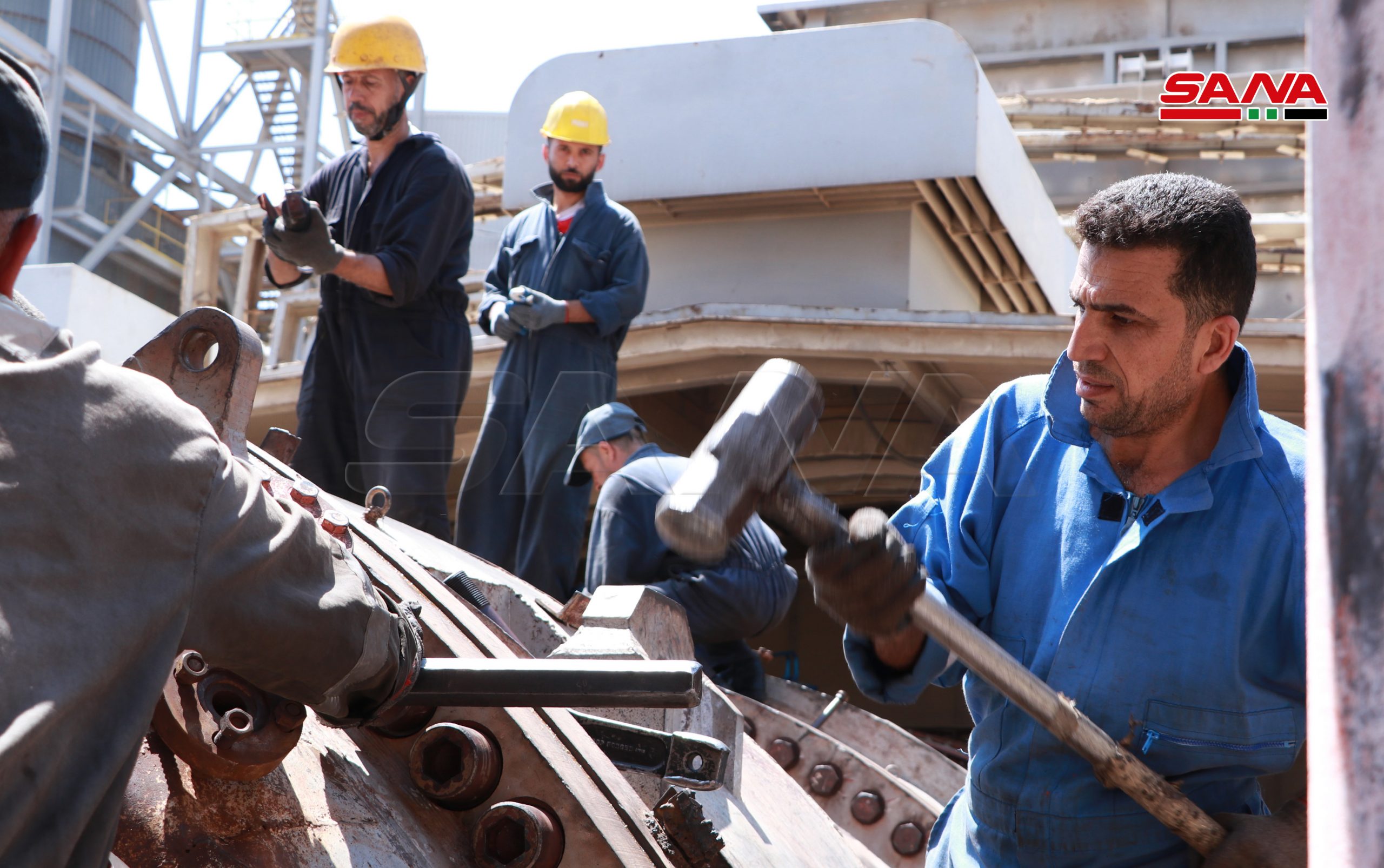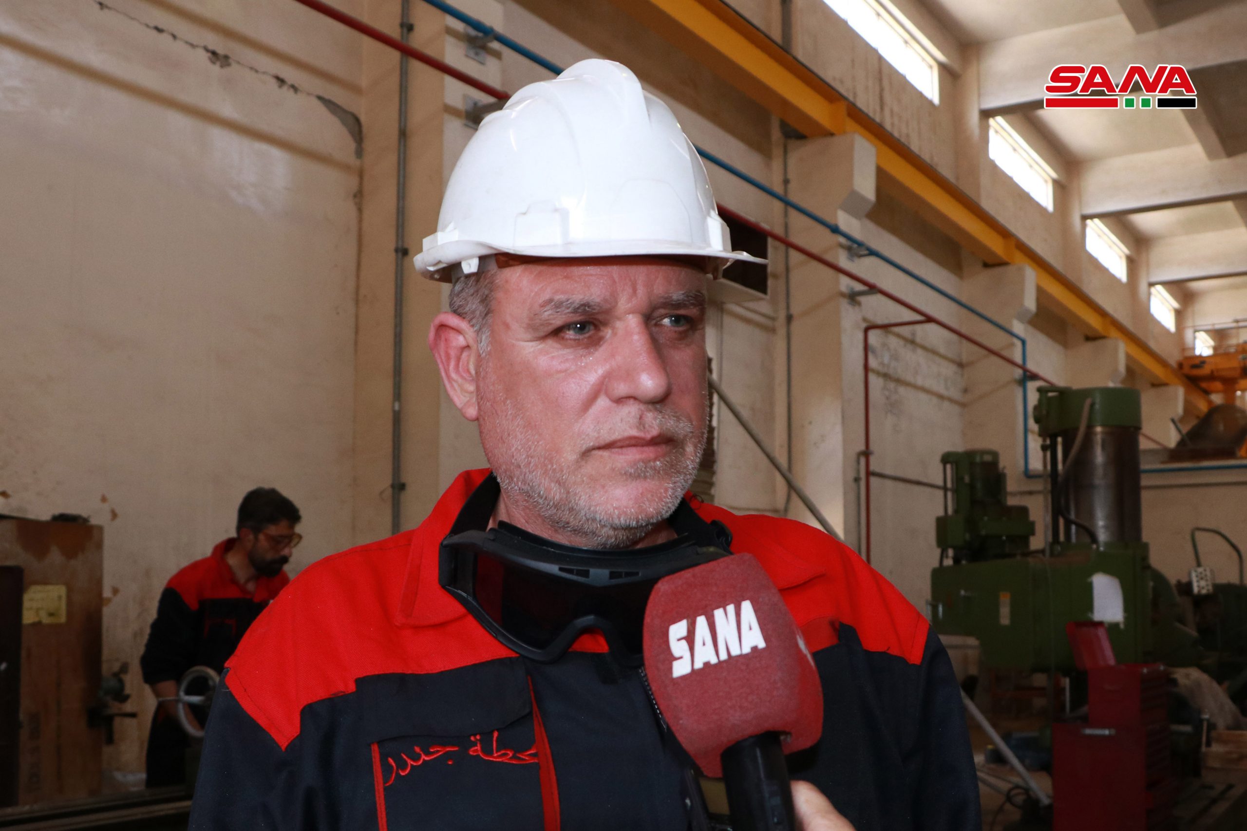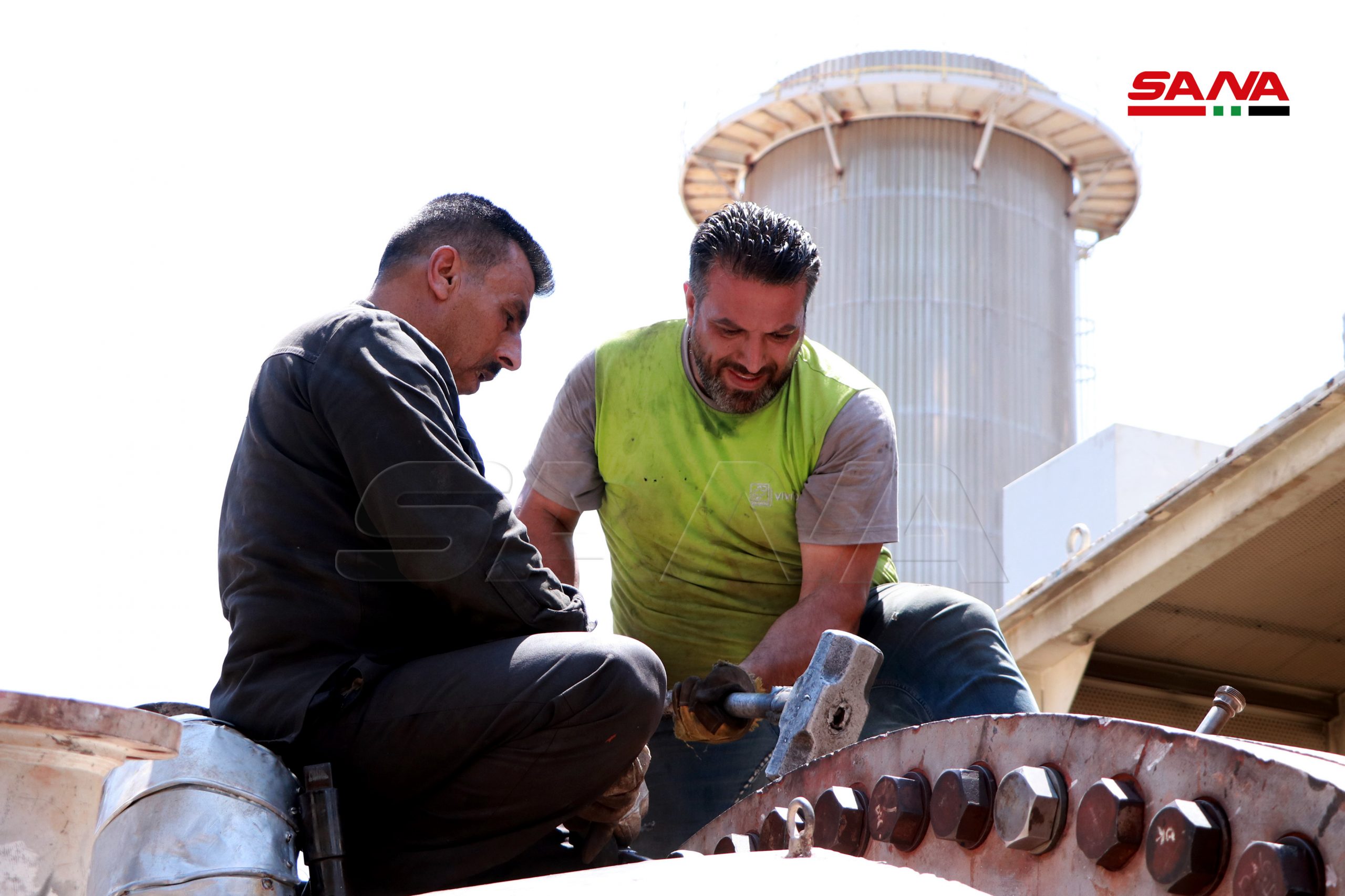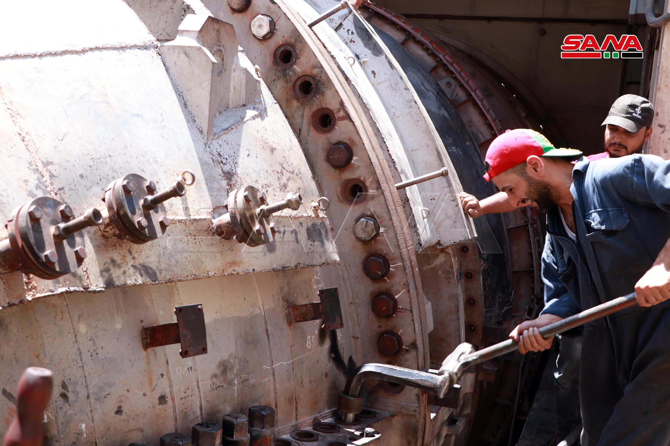 کادرهای فنی شرکت عمومی برق نیروگاه جندر در حمص در حال انجام کارهای تعمیر و نگهداری توربین گازی سوم هستند که دارای ظرفیت 145 مگاوات است.