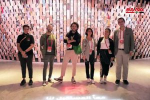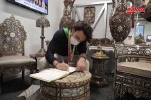 مهندس خالد الشمعة مدیر غرفه، توجه هیئت های بازدیدکننده را به اهمیت بخش «من سوری هستم» و بخش «نامه هایی به آینده» که آثار هنری 1500 خانواده سوری از نقاط مختلف جهان نشان می دهد را جلب کرد.