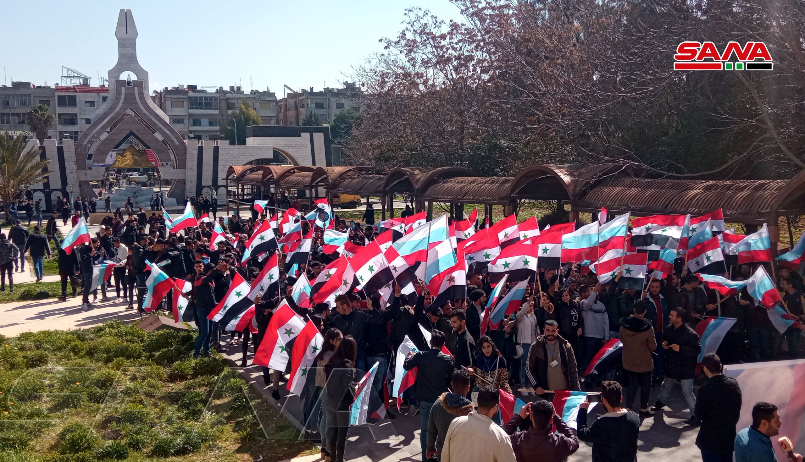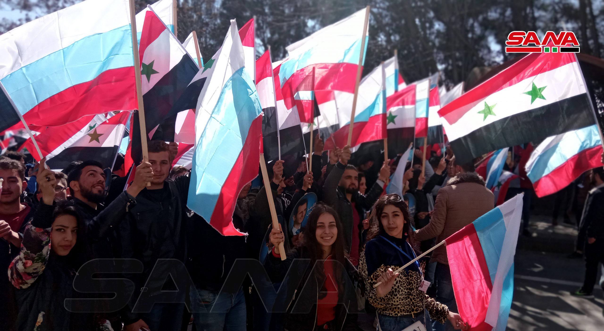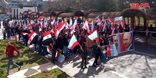 بسیاری از دانشجویان و کارمندان دانشگاه البعث در حمص تجمعی را در حمایت از روسیه برگزار کردند.