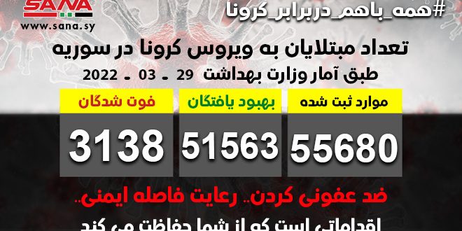 گفتنی است، اولین مورد ابتلا به ویروس کرونا در سوریه در 22 ماه مارس سال گذشته میلادی برای یک نفر بازگشته از خارج ثبت شده بود.