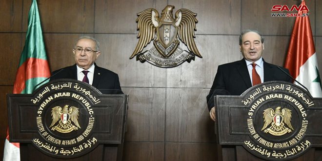 فیصل مقداد امروز در کنفرانس مشترک خبری با رمطان العمامره همتای الجزایری خود در دمشق ،گفت : الجزایر در طول بحران سوریه طی سالهای اخیر، در کنار ملت ما ایستاد و همواره تروریسم و تحریمهای غرب علیه سوریه را محکوم کرد.