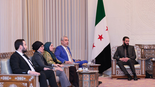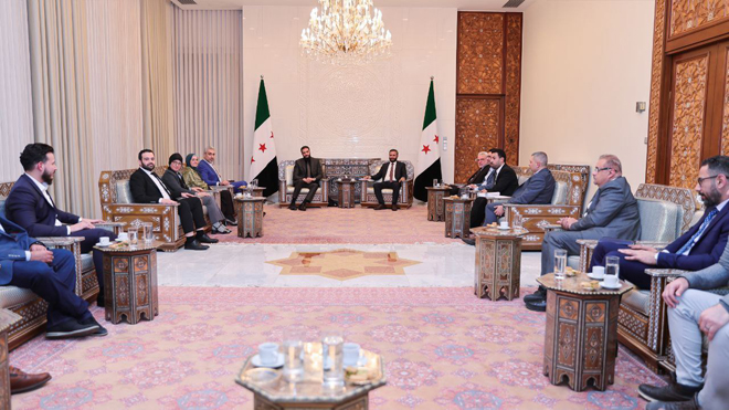 05/01/2025 دمشق – سانا احمد الشرع رهبر اداره جدید سوریه هیئتی از سوری ها مقيم آلمان را به حضور پذیرفت 2025-01-05 Ghiyath شاركها