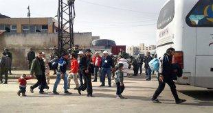 حمص -سانا گزارشگر سانا در حمص گفت در راستای توافق حاصل شده میان دولت و مخالفان سوریه در محله الوعر در استان حمص امروز (شنبه) سومین سری از افراد مسلح این محله را ترک کرده . گزارشگر سانا در حمص افزود که 42اتوبوس شامل 600 عنصر مسلح و بعضی از خانواده های آن ها براساس …
