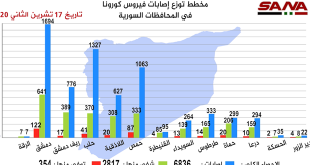 Le graphique montrant les infections du coronavirus dans les gouvernorats syriens jusqu’au 17 novembre 2020