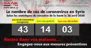 Damas-SANA / Le ministère de la Santé a indiqué que trois cas de coronavirus parmi les cas enregistrés en Syrie avaient été guéris et qu’un nouveau cas de coronavirus avait …