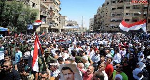 Banlieue de Damas/ Dans le cadre des efforts déployés pour le retour des personnes déplacées à leurs localités et villes libérées par l’armée arabe syrienne du terrorisme, les habitants de …