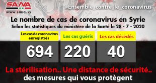 Damas-SANA / Le ministère de la Santé a indiqué que 20 nouveaux cas de coronavirus et 10 cas de guérison avaient été enregistrés aujourd’hui en Syrie. Dans un communiqué, dont …