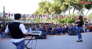 Read More »Une centaine d’enfants participant à une activité du divertissement pour les enfants de martyrs et les orphelins dans le cadre du Festival de la vieille ville de Homs