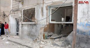 Homs/Sept civils ont été blessés par un obus de mortier, tiré par les réseaux terroristes qui s’abritent dans la banlieue nord de Homs, sur le quartier de Wadi Zahab, a …