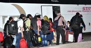 Homs/ La 8e partie d’hommes armés et un certain nombre de leurs familles rejetant l’accord de réconciliation ont quitté le quartier de Waer en direction de Jarablos dans la banlieue nord-est …
