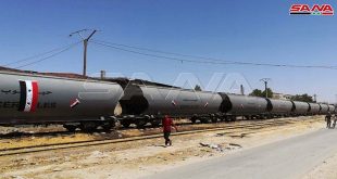 Banlieue de Damas -SANA/ Après 9 ans de rupture du fait du terrorisme, le premier train chargé de 1000 tonnes de blé est arrivé aux silos de Sbeina dans la …