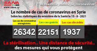Damas-SANA/ Le ministère de la Santé a indiqué aujourd’hui que 50 nouveaux cas de coronavirus, 18cas de guérison et 2 décès avaient été enregistrés en Syrie. Dans un communiqué, dont …
