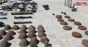 Hama SANA / Les services compétents ont découvert des armes et des mines anti-char dans les fermes du village d’al-Arbaïne, et ce lors des opérations de ratissage des villages purifiés …