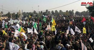 Bagdad-SANA/ Des milliers d’Irakiens ont participé aujourd’hui aux obsèques du lieutenant-général Qassem Soleimani, commandant de la Force al-Qods des Gardiens de la révolution iraniens et du vice-président de la mobilisation …