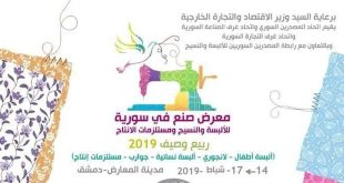Damas -SANA/ L’Union des exportateurs et les chambres d’Industrie et de commerce en Syrie, en coopération avec la ligue des exportateurs syriens des vêtements, organisent l’exposition de “Fabriquer en Syrie” pour …
