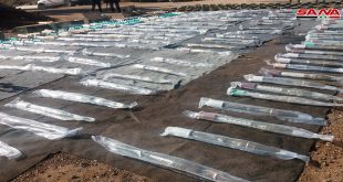 Hama – SANA/ Citant des informations précises, le correspondant de SANA a indiqué que le réseau terroriste ‘’Front Nosra’’ avait stocké des quantités d’armes et de munitions dans le village …