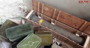 Banlieue de Damas / Les services compétents ont trouvé de grandes quantités d’armes et de munitions, ainsi que des roquettes de fabrication américaine, abandonnées par les terroristes dans les fermes de …
