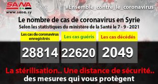 Damas-SANA/Le ministère de la Santé a indiqué aujourd’hui que 136 nouveaux cas de coronavirus, 23 cas de guérison et 5 décès avaient été enregistrés en Syrie. Dans un communiqué, dont …