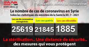 Damas -SANA/ Le ministère de la Santé a indiqué aujourd’hui que 33 nouveaux cas de coronavirus, 7 cas de guérison et 3 décès avaient été enregistrés en Syrie. Dans un …