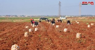 La récolte des pommes de terre dans le village d’al-Mbarkia dans la campagne sud-ouest de Homs