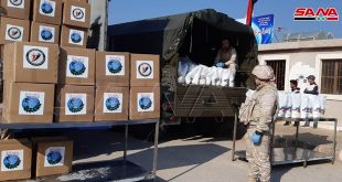 Les aides russes octroyées dans le centre d’hébergement de Herjelleh dans la banlieue de Damas