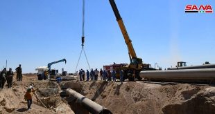Les travaux de réhabilitation et de réparation du gazoduc arabe qui est la cible d’une explosion terroriste dans la zone entre Adra et Dmeir dans la banlieue de Damas.