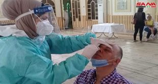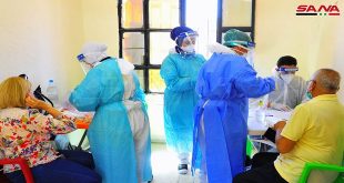Prise dans les deux salles d’al-Jalaa et de Tichrine à Damas des écouvillons pour le test de coronavirus « PCR »