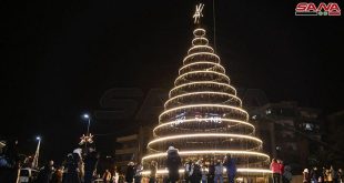 Illumination du sapin de Noël dans la localité de Qetinah dans la banlieue de Homs