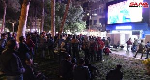 Les Syriens assistent au match entre la séléction syrienne et la selection chinoise sur les places publiques