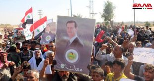 Les habitants de la banlieue nord de Deir Ezzor observent un sit-in de protestation contre l’agression turque dans le village de Salhya