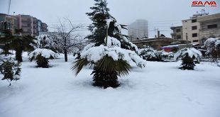 Les chutes de neige à Soueidaa et dans la citadelle de Jandal dans la banlieue de Damas