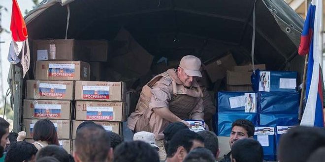 Le ministère a ajouté que le Centre de coordination russe à Hmeymim avait acheminé hier environ 4 tonnes de denrées au village de Droucha dans la banlieue de Damas et 147 tonnes d’aide aux habitants des deux localités de Tal Chehab et Jezah.