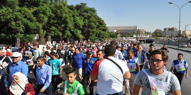 Damas / Des personnalités officielles, civiles et sociales, ainsi que des initiatives juvéniles, ont pris part aujourd’hui à partir de la place des Omeyyades jusqu’à la cité sportive de Jalaa, au marathon de la sensibilisation à la détection précoce du cancer du sein.