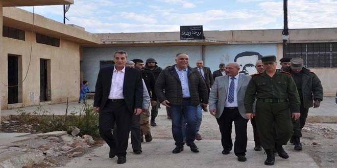 Le gouverneur de Homs s’informe de l’état des infrastructures dans le village de Maksar Hussane et à Jeb Jarrah