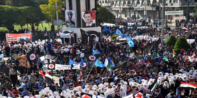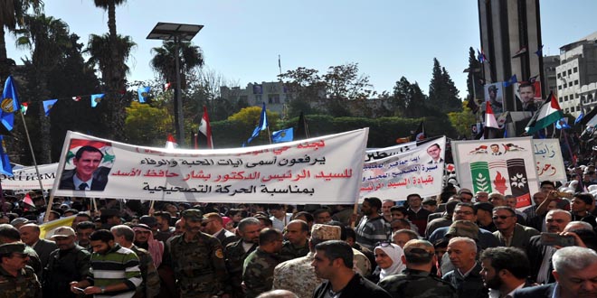 17/11/2017 Rassemblement imposant sur la place des martyrs à Homs à l’occasion du 47e souvenir du Mouvement de Redressement 2017-11-17 admin Share tweet
