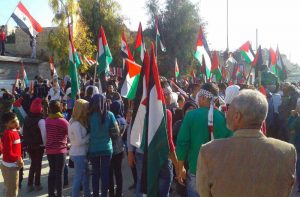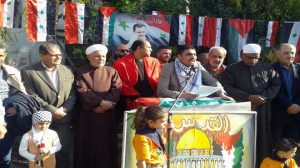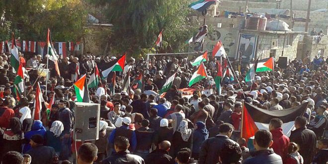 Banlieue de Damas/ Des centaines de Palestiniens et de Syriens des habitants de Jaramana et de Doueilaa ont participé à une manifestation, organisée aujourd’hui par les factions palestiniennes, pour soutenir al-Qods et rejeter la décision du président américain, Donald Trump, sur la reconnaissance d’al-Qods comme capitale de l’occupant israélien.