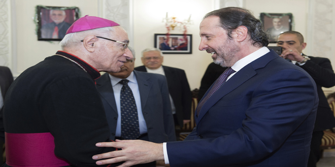 Le ministre Azzam a également visité le patriarcat des grecs catholiques et présenté au patriarche Youssef Absi, patriarche d’Antioche et de tout l’Orient pour les grecs-catholiques melkites les félicitations du président al-Assad pour cette occasion.