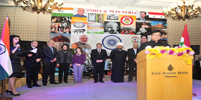 02/02/2018 Related Articles Réception à l’ambassade d’Inde à Damas à l’occasion du 69ème anniversaire de la fête nationale de l’Inde 02/02/2018 L’ambassadeur d’Inde à Damas : Nous nous tenons aux côtés de la Syrie dans sa guerre contre le terrorisme 02/02/2018 Réception à l’ambassade d’Inde à Damas à l’occasion du 69ème anniversaire de la fête nationale de la République 2018-02-02 admin Share tweet