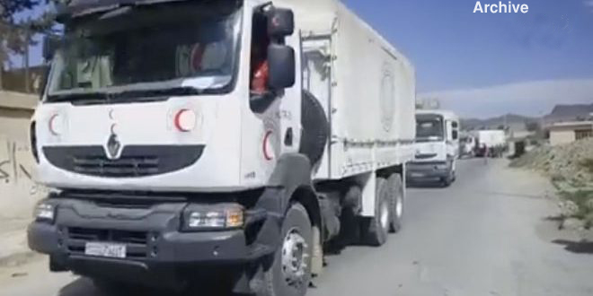 Le correspondant de SANA dans le Camp de Wafidine a affirmé que le convoi se compose de 13 camions chargés de la nourriture et des matières de secours qui suffisent à 12 mille personnes.