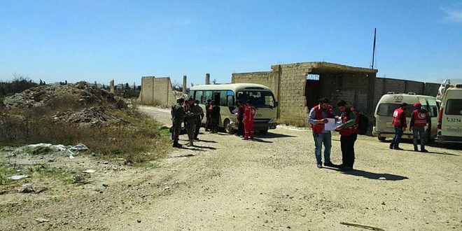 Banlieue de Damas /Des unités de l’armée arabe syrienne ont évacué une nouvelle partie des civiles assiégés par les réseaux terroristes dans la Ghouta orientale via le corridor sécurisé menant au camp de Wafidine.