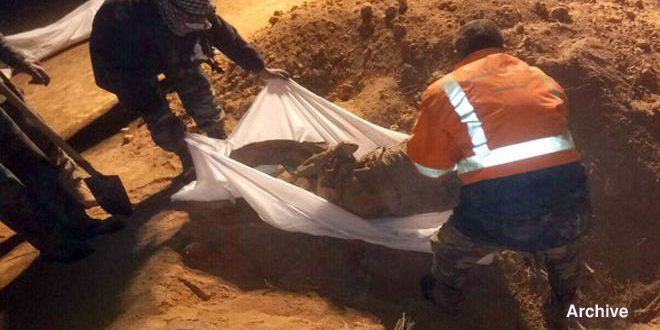 Selon le correspondant, des unités de l’armée, en collaboration avec le Croissant-Rouge arabe syrien, exhumeront ultérieurement les dépouilles dans les deux fosses en prélude de les livrer à leurs familles.