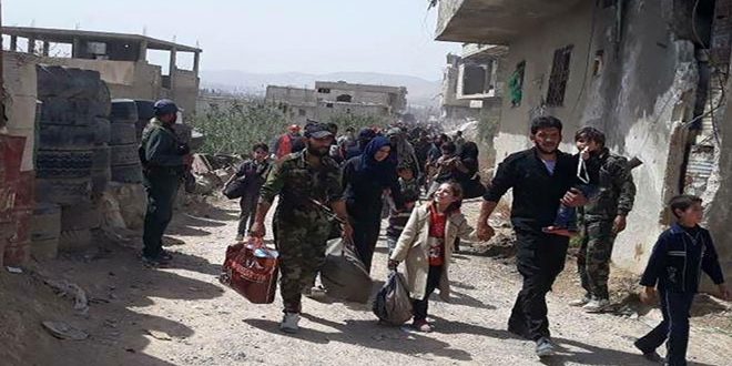 La correspondante de SANA dans le camp de Wafidine a indiqué que des unités de l’armée, en collaboration avec le Croissant-Rouge arabe syrien, avaient sécurisé aujourd’hui l’évacuation de 4500 civils de la partie nord de la Ghouta orientale, leur avaient octroyé toute aide et les avaient transportés à bord des autobus et des ambulances aux centres d’accueil temporaire.