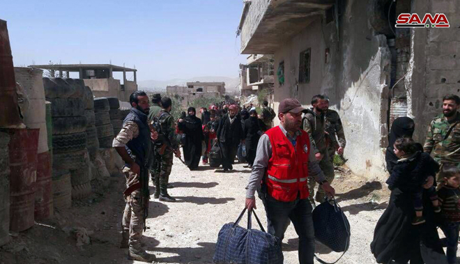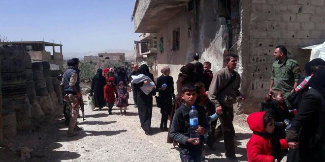 Une source militaire a déclaré à SANA que 1092 civils séquestrés par les réseaux terroristes à la Ghouta orientale sont sortis depuis ce matin via le corridor de Wafidine.