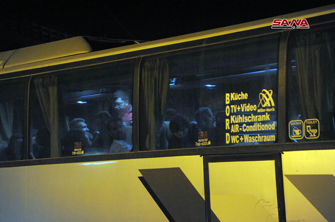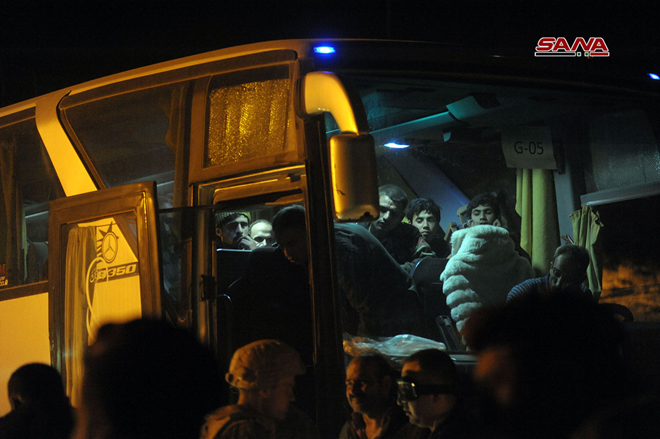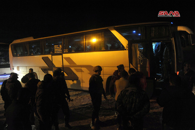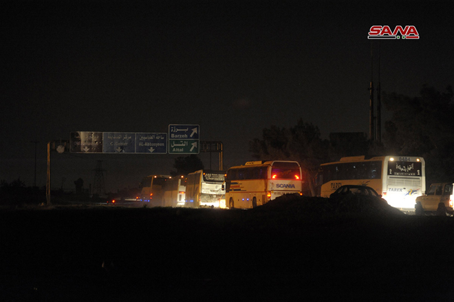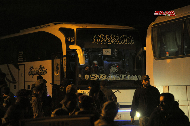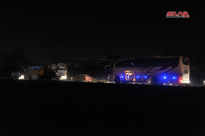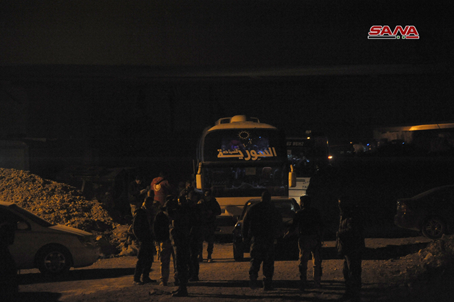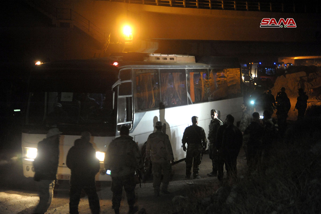 25/03/2018 Sortie de la première partie des hommes armés et de leurs familles via le corridor d'Erbine en direction d’Idleb 2018-03-25 dima Share tweet