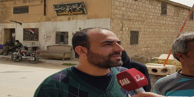 28/03/2018 La caméra de SANA rencontre les habitants dans la ville de Tell Refaat dans la banlieue d'Alep 2018-03-28 admin Share tweet