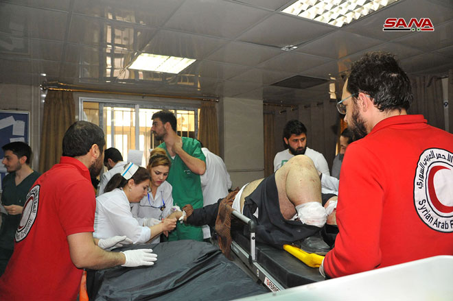 07/04/2018 Les blessés des attaques aux obus menées par les terroristes de ‘’l'Armée de l'Islam’’ contre des quartiers à Damas 2018-04-07 dima Share tweet