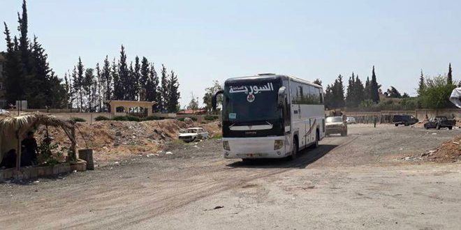 Le correspondant de SANA au corridor du camp de Wafidine a souligné la sortie des centaines de terroristes de « l’Armée de l’Islam » avec leurs familles à bord 29 autobus de la ville de Douma afin de les transporter à Jarablos.