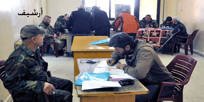Homs /La situation de 156 hommes armés de la banlieue nord de Homs a été régularisée, après qu’ils s’étaient rendus aux autorités avec leurs armes, et ce, dans le cadre des efforts déployés par le gouvernorat en vue d’achever la réconciliation locale en préparation au retour à la vie normale dans les différentes zones.