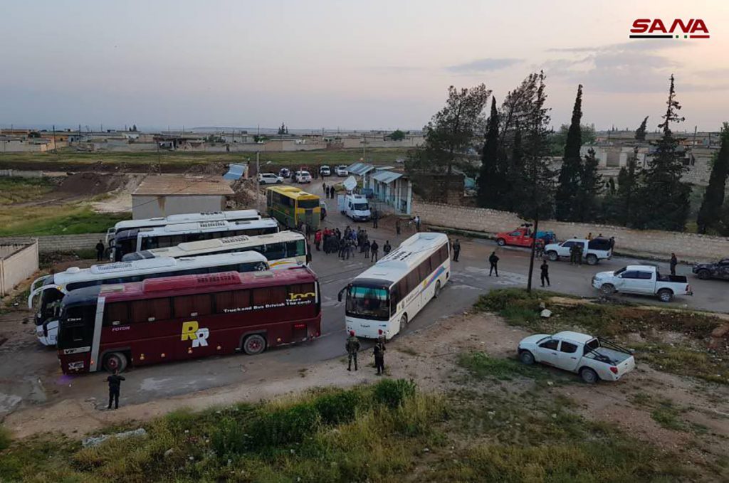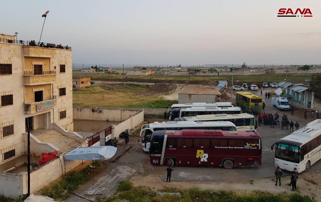 Damas / 42 personnes enlevées du village d’Ichtabraq et 5 cas humanitaires des deux localités de Kafraya et Fouaa sont arrivés ce matin au corridor d’al-Is au sud de la ville d’Alep, simultanément avec l’évacuation de 200 terroristes environ avec leurs familles vers la banlieue d’Idleb, et ce dans le cadre de l’exécution de la 1ère étape de l’accord sur l’évacuation des terroristes du camp de Yarmouk et sur la libération des personnes enlevées d’Ichtabraq et de celles assiégées dans les deux localités de Kafraya et Fouaa.