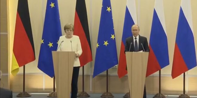Dans une conférence de presse qu’il a tenue aujourd’hui avec la Chancelière allemande, Angela Merkel, Poutine a souligné avoir discuté avec Merkel de la question de la crise en Syrie, faisant savoir qu’ils avaient affirmé l’importance de contribuer d’une manière conjointe au processus de règlement politique sur la base des deux processus de Genève et d’Astana, de rétablir la stabilité sur le terrain et d’acheminer les aides humanitaires à la population en Syrie.